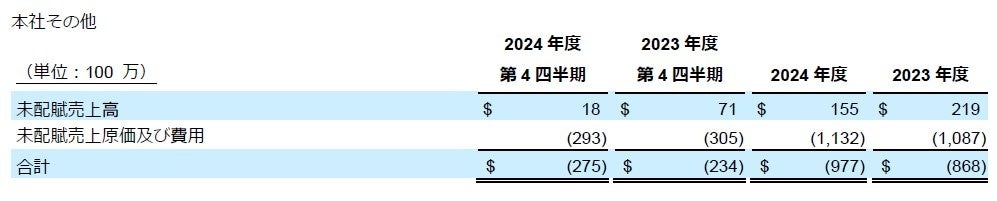2024年度第1四半期より、当社経営陣はセグメント別業績の評価に株式ベース報酬支出を含めることとしました。過年度の数値は本年度の表示に合わせて修正再表示されています。