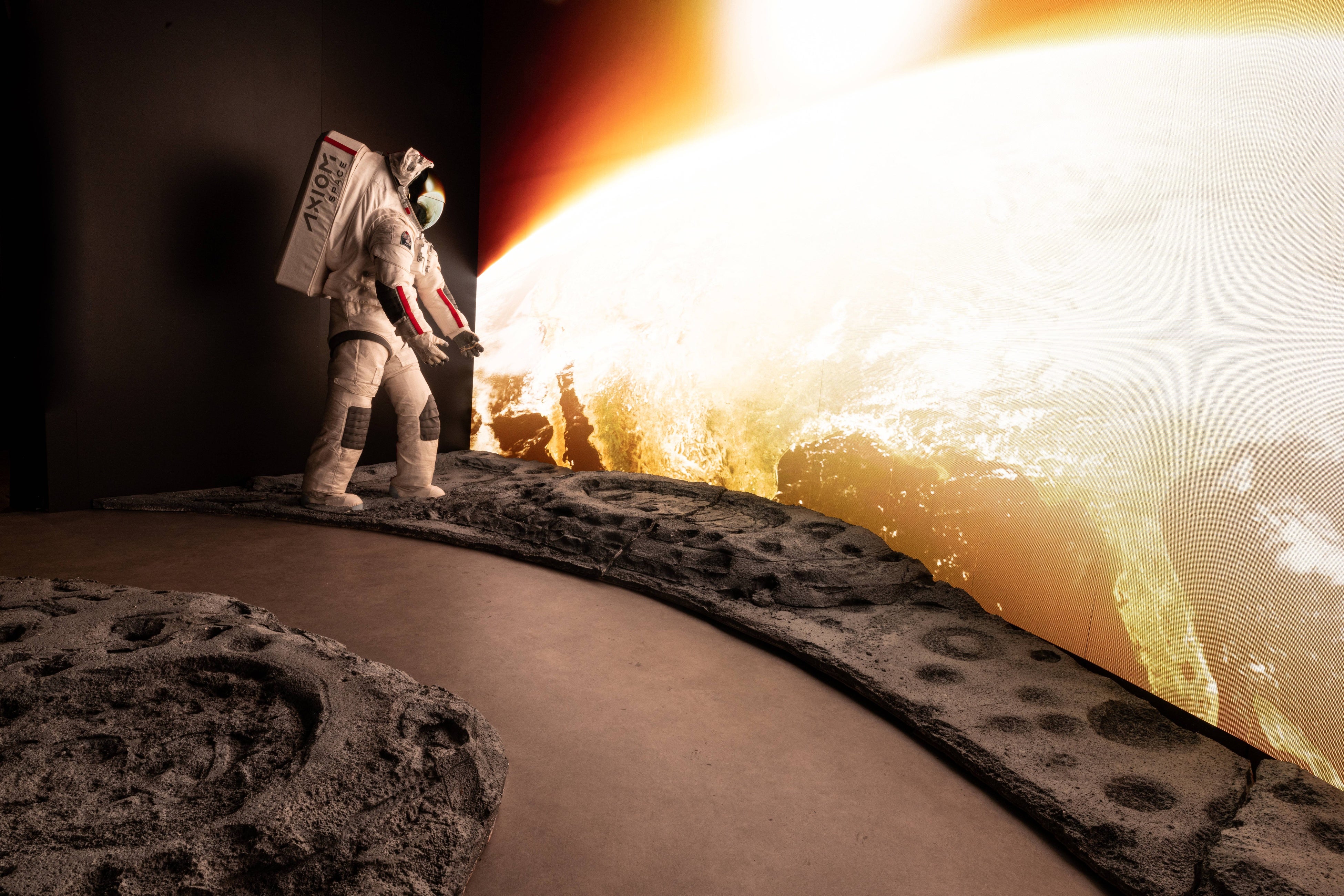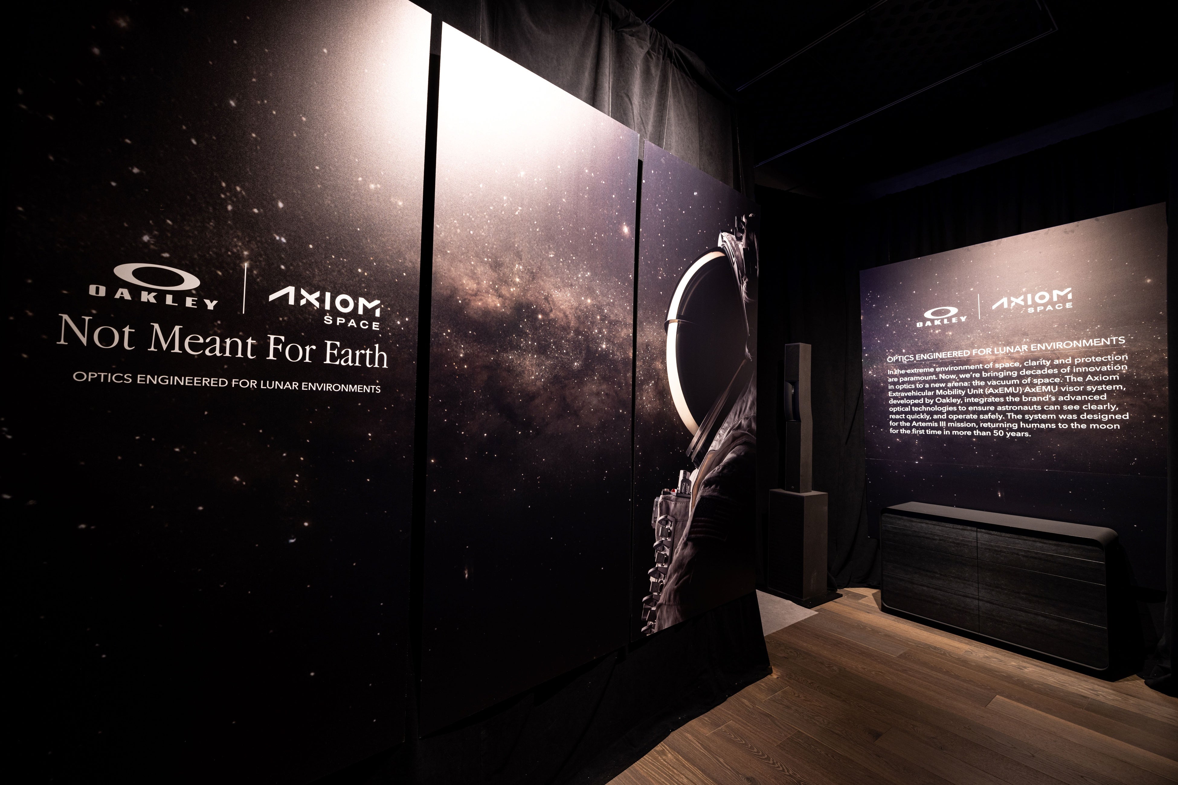 次世代の宇宙服であるアクシオム船外活動ユニット「AxEMU(Axiom Extravehicular Mobility Unit)」のバイザーシステムのプロトタイプを通じて、月面着陸を仮想体験。オークリーの革新は、地球の枠を超えます。