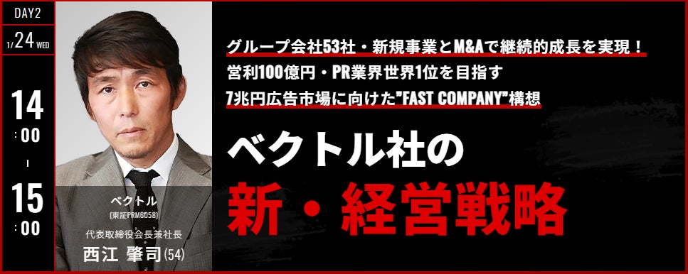 株式会社IR Robotics(本社:東京都千代田区、代表取締役 金 成柱、HP:http://ir-robotics.co.jp/)が、2024年1月23日(火)・24日(水)の2日間にわたり開催するビジネスカンファレンス「経営戦略SUMMIT 2024 by Japan Stock Channel」。全登壇者様が決定いたしましたので、本イベントの見どころと併せてご紹介いたします。