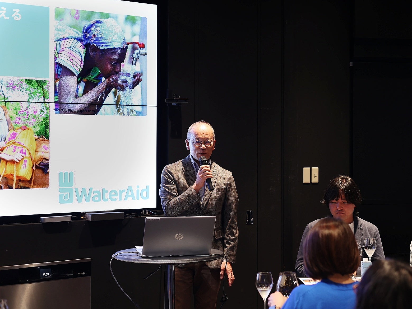 水・衛生専門の国際NGO「ウォーターエイド」からは、プログラムコーディネーター 木藤耕一氏にご登壇いただき、世界の水に関する状況をお話いただきました。水汲みは、80%の家庭で女性や女の子が担っているなど、水の問題がジェンダーなどあらゆる問題に関連していることを教えていただきました。
