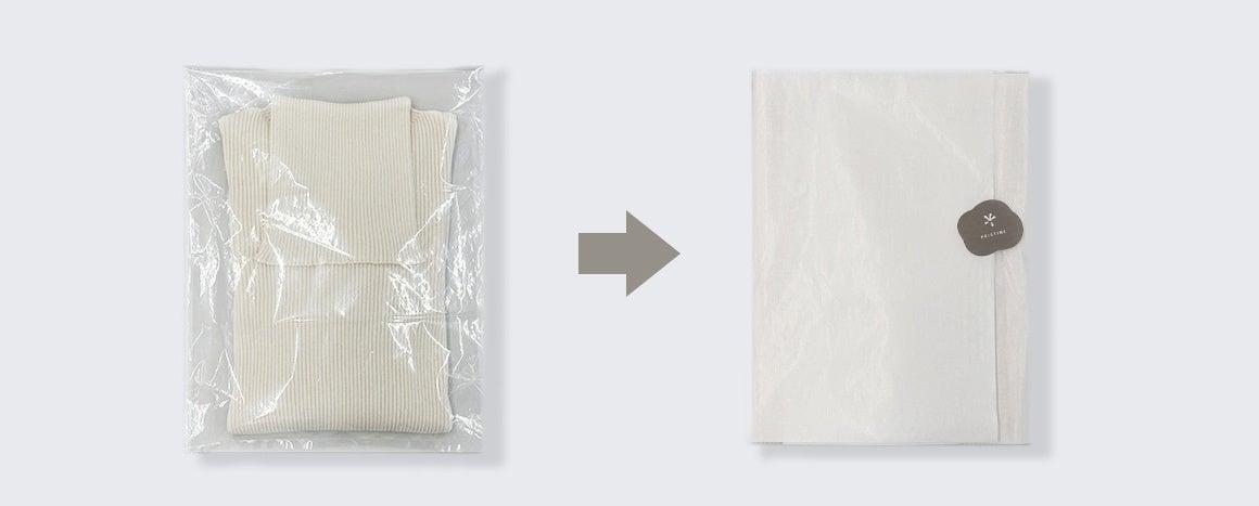 これまでプリスティンでは、持続可能なものづくりを促進するために、再生可能な「循環型リサイクル袋」採用、回収したビニールを再生させリサイクルしていましたが、ノープラスチックのものづくりをさらに加速させるために、梱包方法を見直しを決定しました。オンラインショップではナチュラルフライデー期間中の11月19日ご注文分から、商品お届け時の梱包方法を変更し、商品の個別袋入れをせず、まとめて薄紙でお包みいたします。