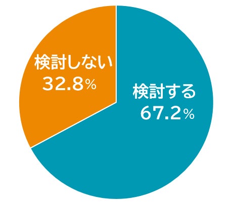 “現在、持ち家にお住まいで住宅ローンを今まさに返済している方”に対して、住宅ローン金利が上昇した場合、住宅ローンの返済について何らかの変更を検討するかどうかについてお伺いしたところ、「検討する人」が67.2%、「検討しない人」が32.8%という結果となりました【図表3】。