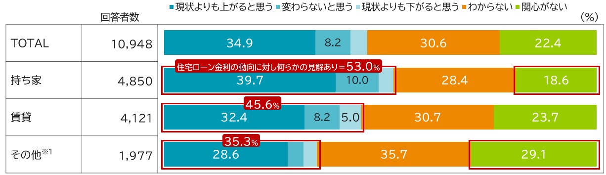 【図表1】今後の住宅ローン金利の動向に対する考え(現在の居住形態別)