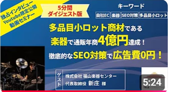 【楽器EC業界の異端児!福山楽器センター】地方の楽器店が競合が激しいEC業界で年商4億円、しかも、高収益を達成している話が聞けるセミナーのダイジェスト動画公開を開始!