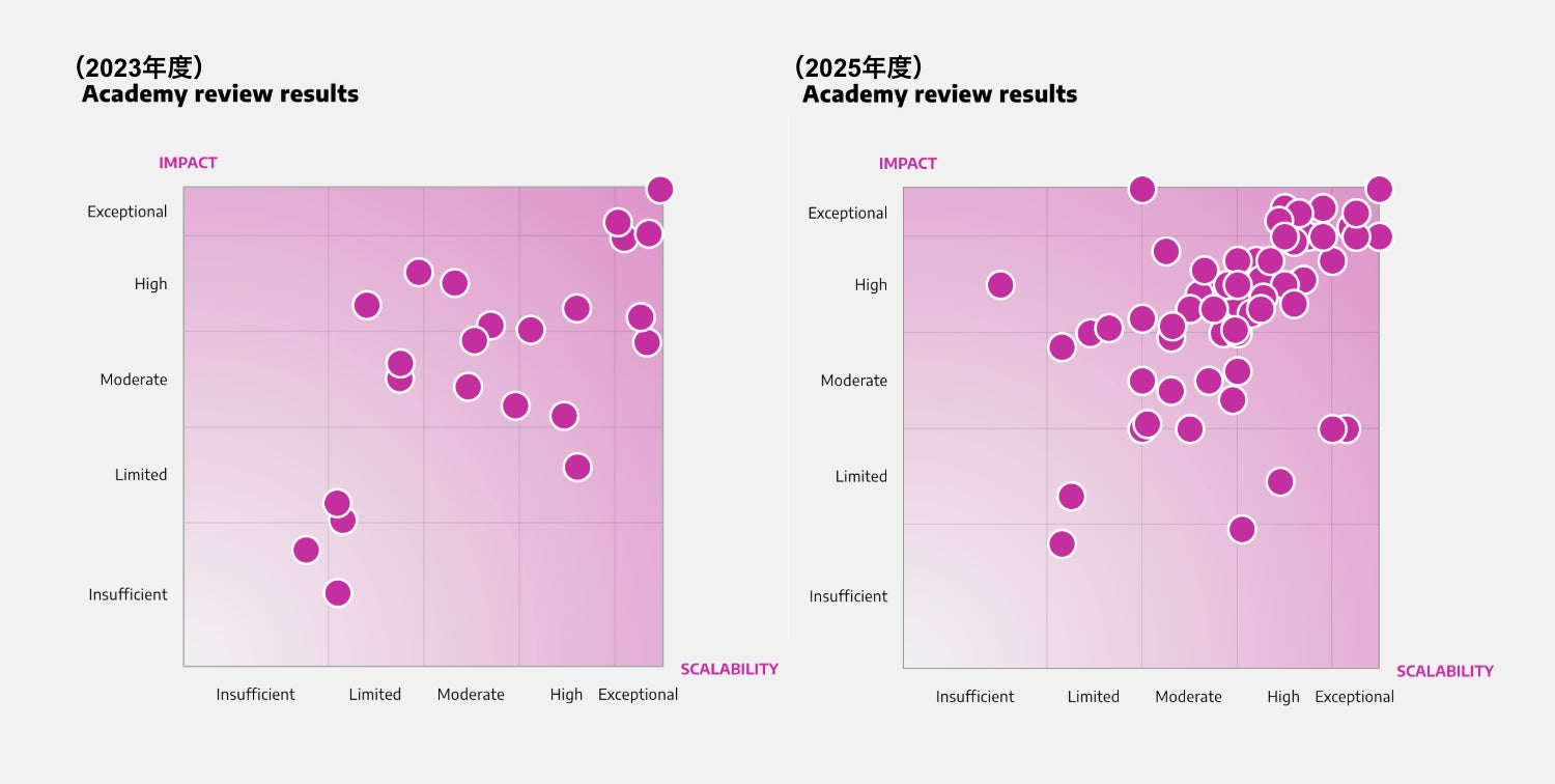 インパクト(影響度)とスケーラビリティ(拡張性)を前回選出時(2023年度)より高く評価いただきました。