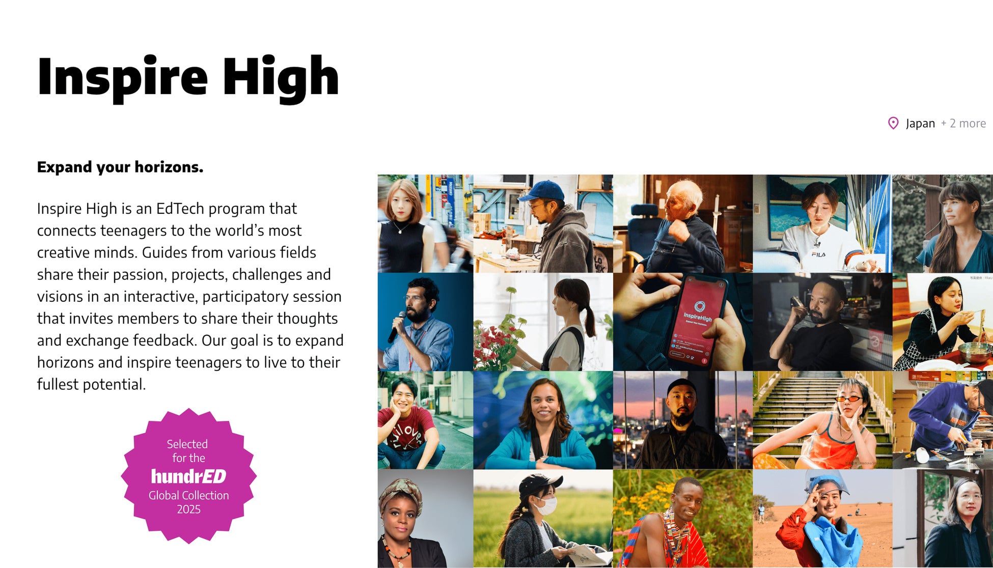 世界の教育イノベーションTOP100を選ぶ『HundrED Global Collection 2025』にInspire Highが選出されました。