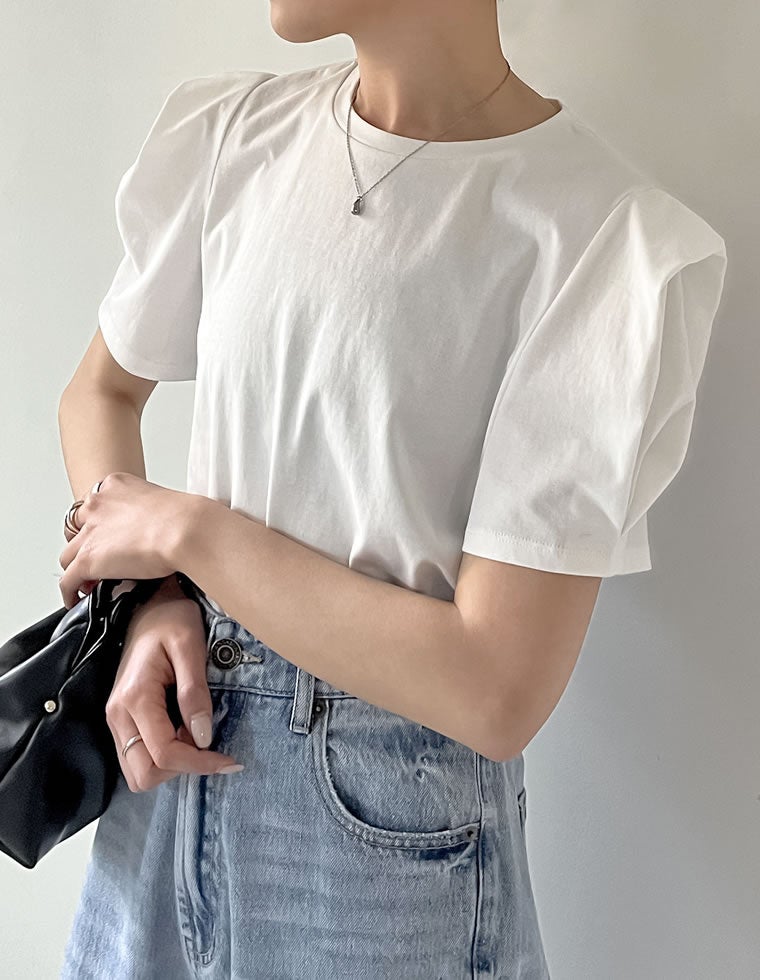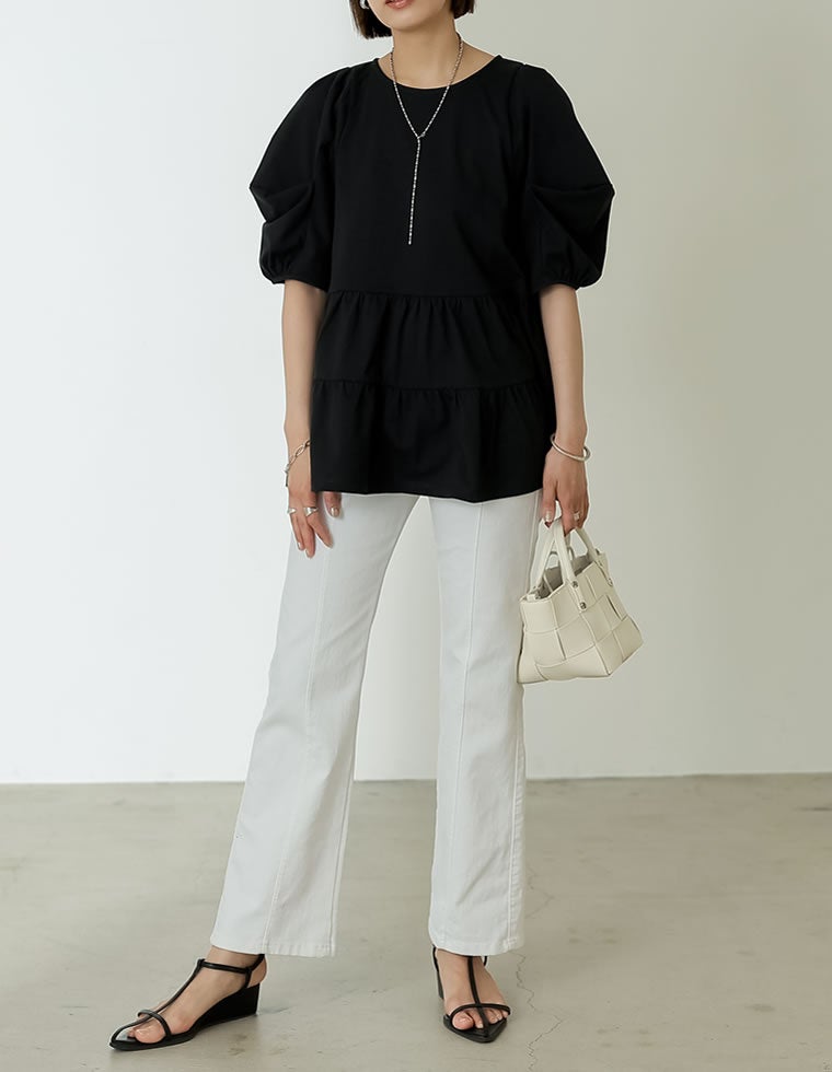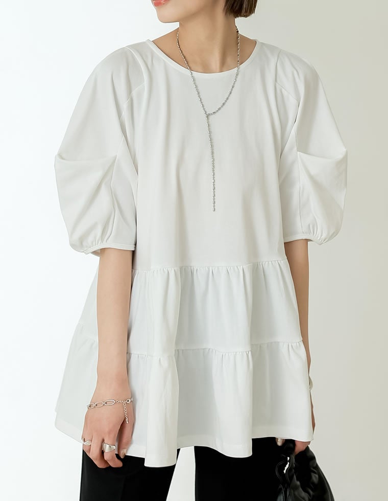 [接触冷感]パフスリーブティアードカットソーチュニック