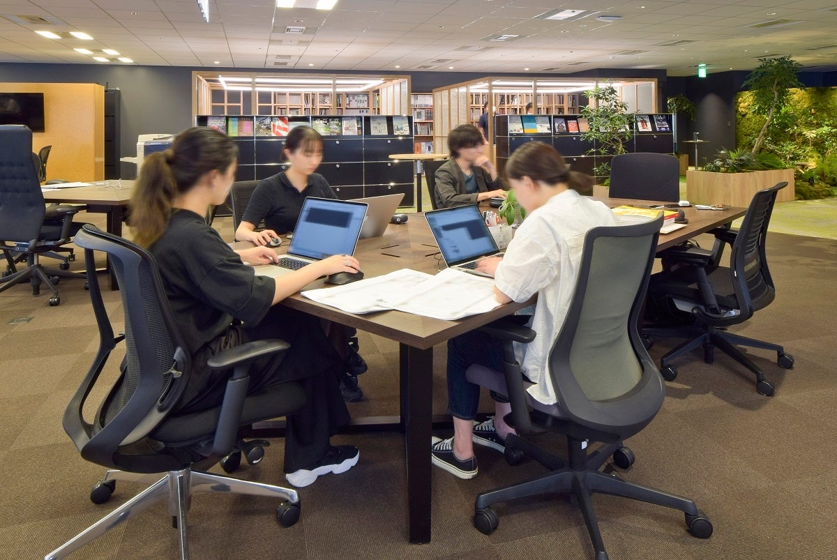 2019年時点は出社を前提としており、ワークスペースは壁をつくらずオープンなエリアとし、フリーアドレスを導入して各個人で働く場となっていました。