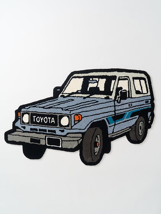 歴代ランドクルーザーの中でも、永く支持され続けている“70”シリーズから、ショートボディの一台を堂々とそのままデザインへと落とし込みました。全長130cmと大きな存在感を放ちながらも、落ち着いた配色やラグならではの表情とクラシックなデザインが相まってインテリアにも馴染みのいいアイテムです。サイズ :約W1300×H726mm