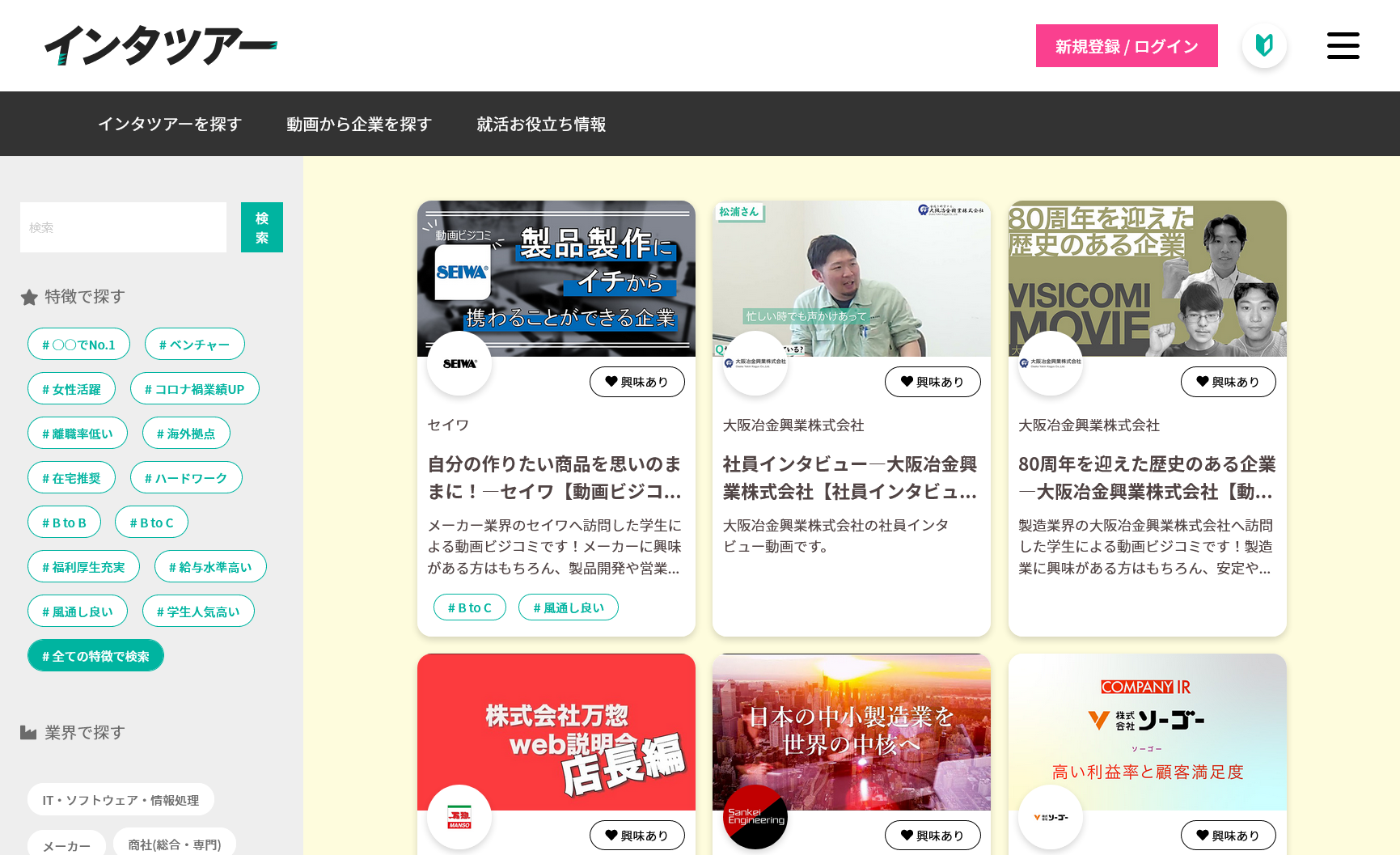 企業と学生のコミュニケーションを支援する(株)インタツアー(代表:作馬 誠大、本社:東京都港区浜松町)は、企業インタビューナビサイト「インタツアー」(https://intetour.jp/)の動画コンテンツサービス「インタツアームービー」をリニューアルしました。就職活動と採用活動における動画利用を促進し、テキストや静止画よりも多くの情報授受を可能にすることで、学生と企業の相互理解を促進するサービス/機能を強化してまいります。