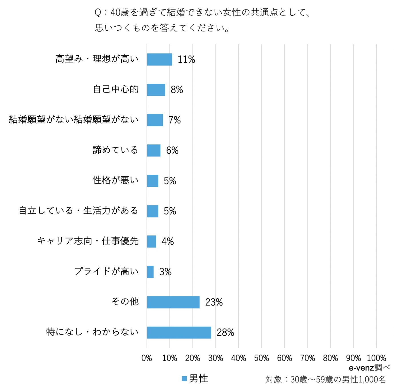 以下、「プライドが高い」「容姿が悪い」「キャリア志向・仕事優先」の順となっています。
