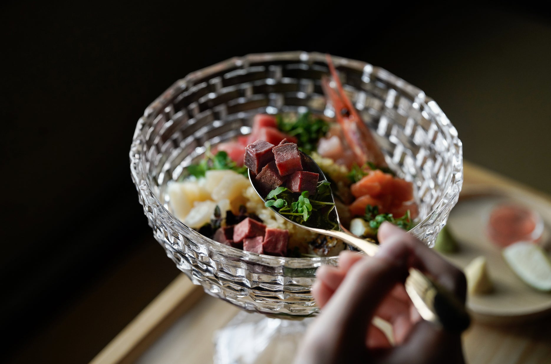 2021年3月にオープンした【 TILE (タイル) 】は、“伝統の再定義”をコンセプトとした、全く新しい価値観の「食」を楽しめる創作海鮮丼専門店。約30種類のネタの中から、好みのネタを自由にレイアウトし、金沢薬味海鮮丼を、美しい宝石箱に落とし込むという体験型レストランです。築110年の町屋を改装し、不特定多数の人を集めるのではない、クローズドで特別な空間を演出。2022年、2023年には、世界最大の旅行プラットフォーム「トリップアドバイザー」より、優れたサービスを一貫して提供する施設に贈られる「トラベラーズチョイスアワード」を受賞。