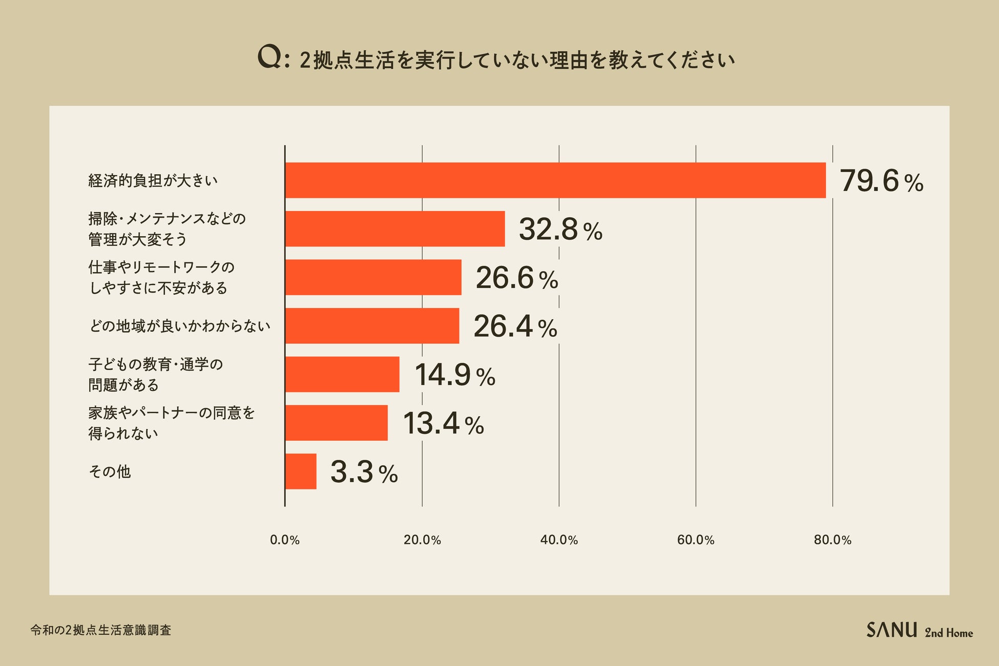 こうした層にとって、“移住”ではなく、無理なく通える”もうひとつの家”という形で2拠点生活を取り入れるスタイルが、現実的かつ共感を得やすい選択肢であることがうかがえます。
