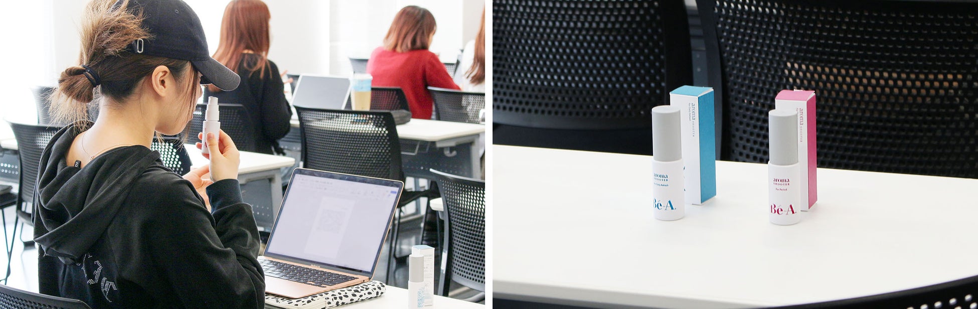 実際に香りをお試しいただくと、「このいい香りのミストで諦めてきたあのいやなニオイが解決する!?」といったように、新しいアイテムの存在に女子学生たちは驚きを隠せない様子でした。
