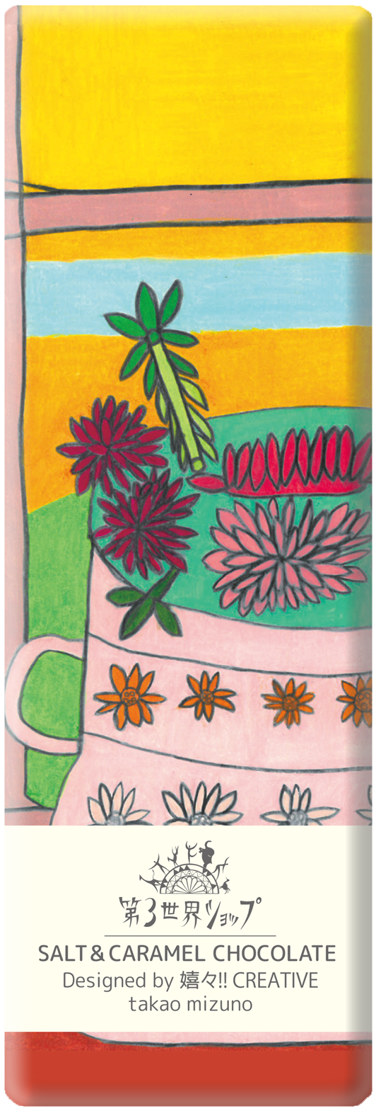 国際的な有機認証を取得したオーガニック・フェアトレードチョコ。乳化剤や人工香料といった添加物不使用。福祉施設/アトリエ 「嬉々!! CREATIVE(キキ・クリエイティブ)」のアーティストが手がける限定アートパッケージは手にした瞬間にワクワクが止まらないポップ&キュートなデザイン。