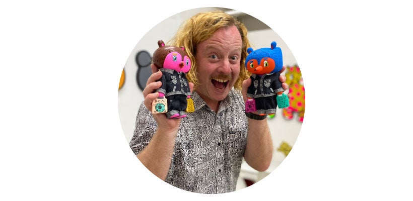 現在は東京を拠点に活動。鮮やかな色と力強い手描きのラインを駆使したユニークなキャラクターアートを得意とし、音楽、ファッション、インテリア雑貨など様々な分野にイラストを提供。2012年より、東京・田端にあるギャラリーWISH LESSのオーナーとして、国内外の作家の展覧会キュレーションも行っています。