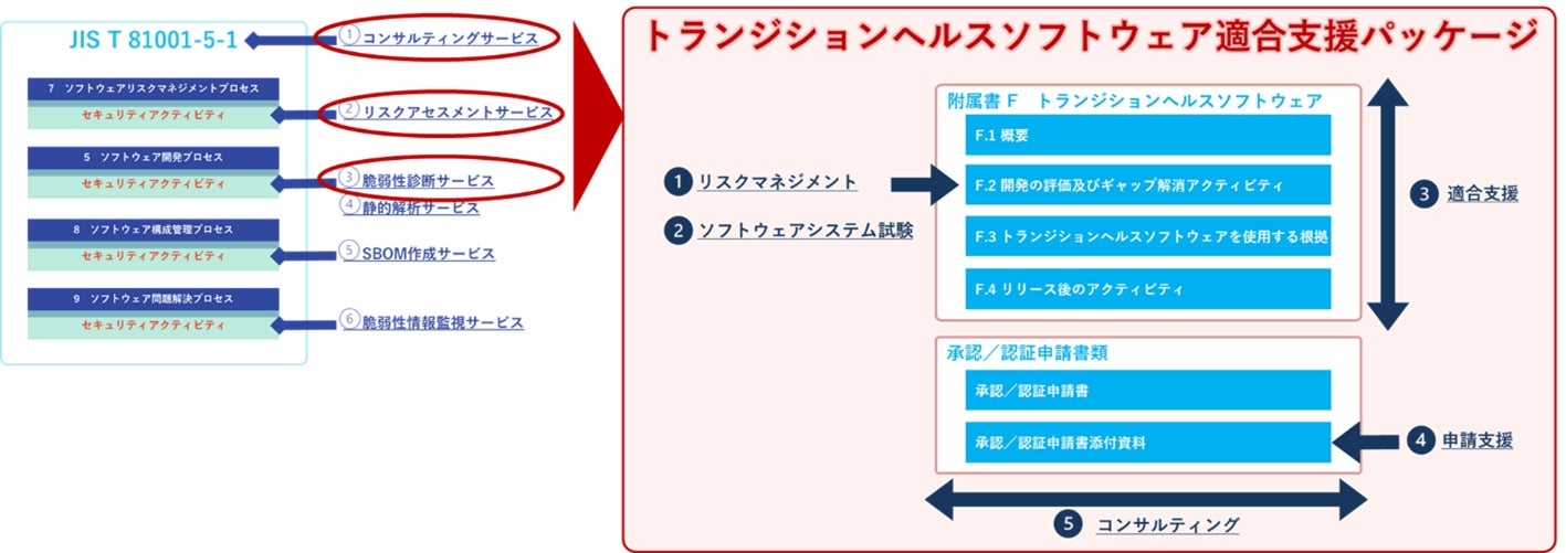 医療機器開発において対応が必要な「JIS T 81001-5-1」に規定されている「附属書F トランジションヘルスソフトウェア」への適合支援をパッケージとして提供