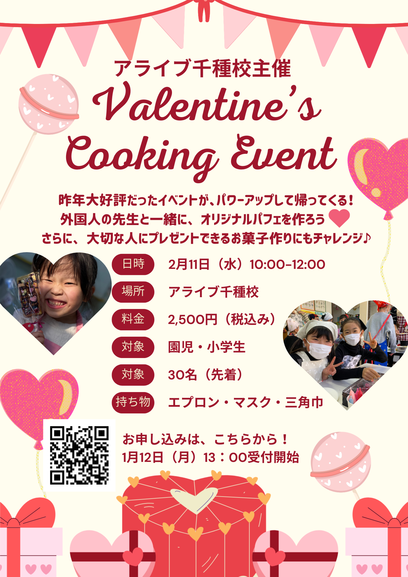 子ども英会話スクールおよび英語保育園を運営する株式会社アライブ(本社:愛知県名古屋市、代表取締役:三井博美)は、2026年2月11日(水・祝)、園児・小学生を対象とした「バレンタイン・クッキングイベント」を開催いたします。