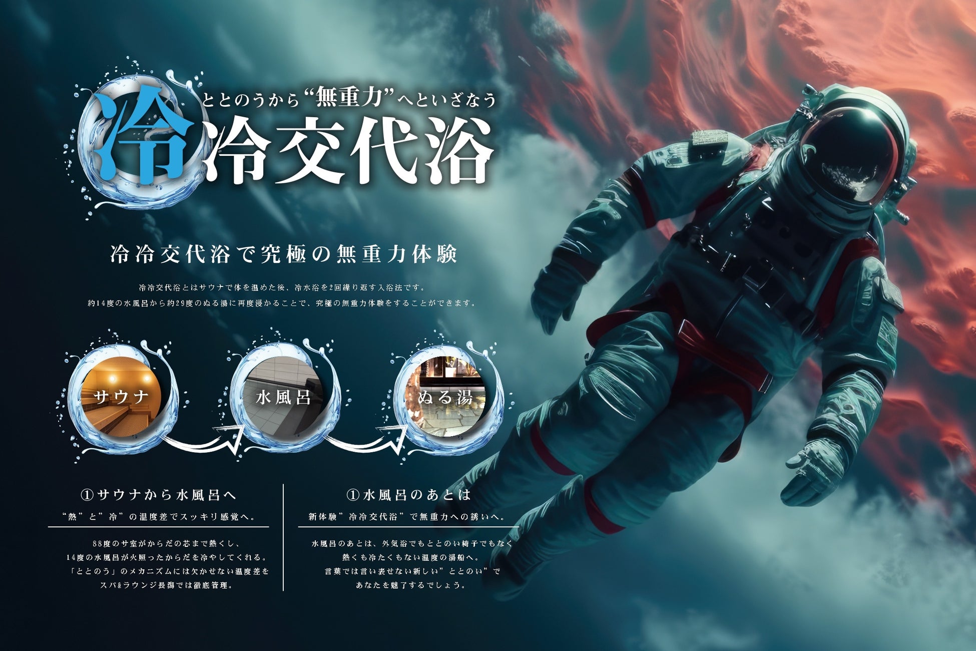 キンキンに冷えた水風呂から外気浴ではなく水温「29度」のぬるま湯に入ることで、今までに味わったことのない【無重力の世界】を体験することができます。