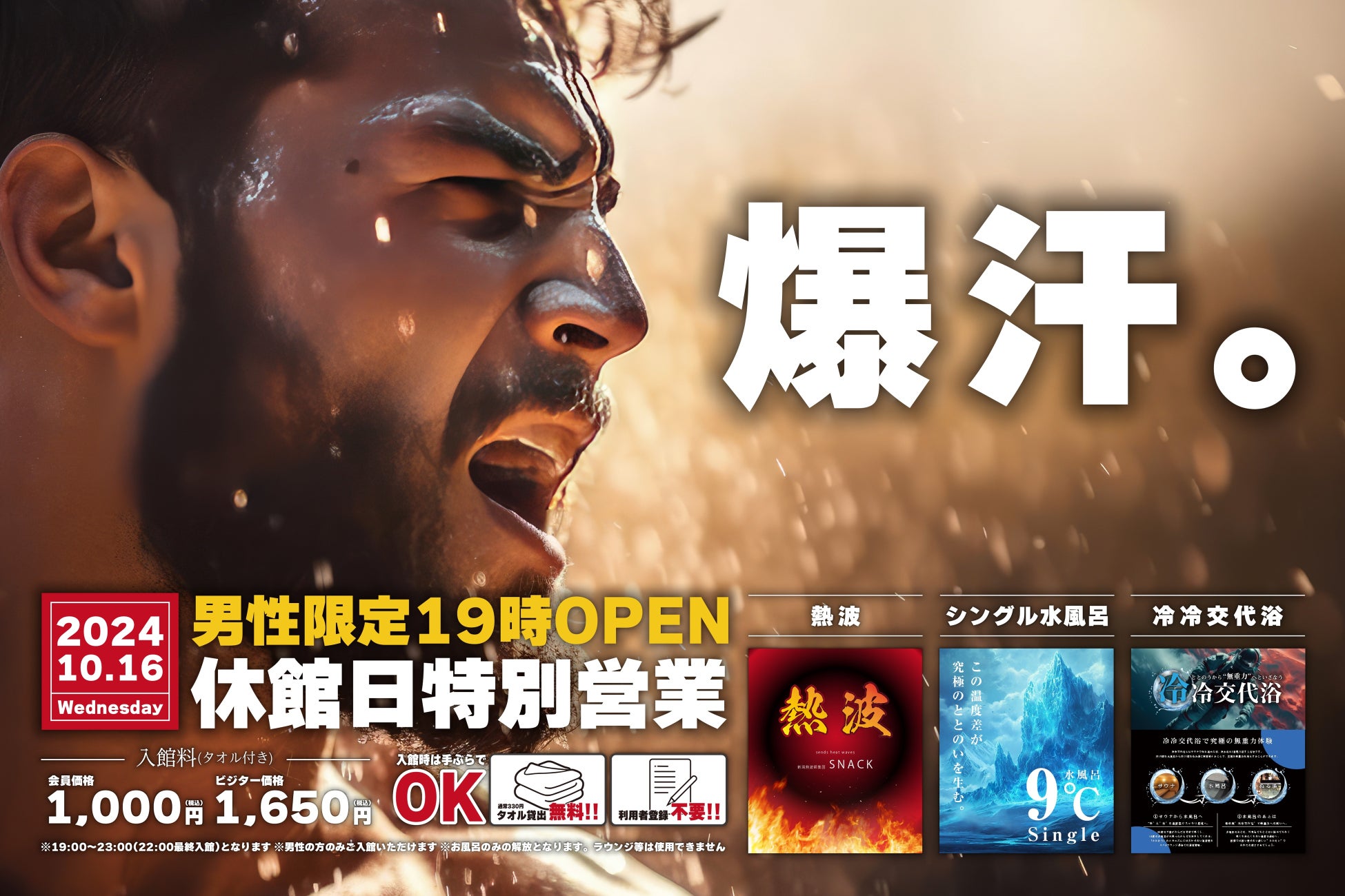 ※16日(水)の入館は男性限定となります。女性の方は、ご利用いただけません。