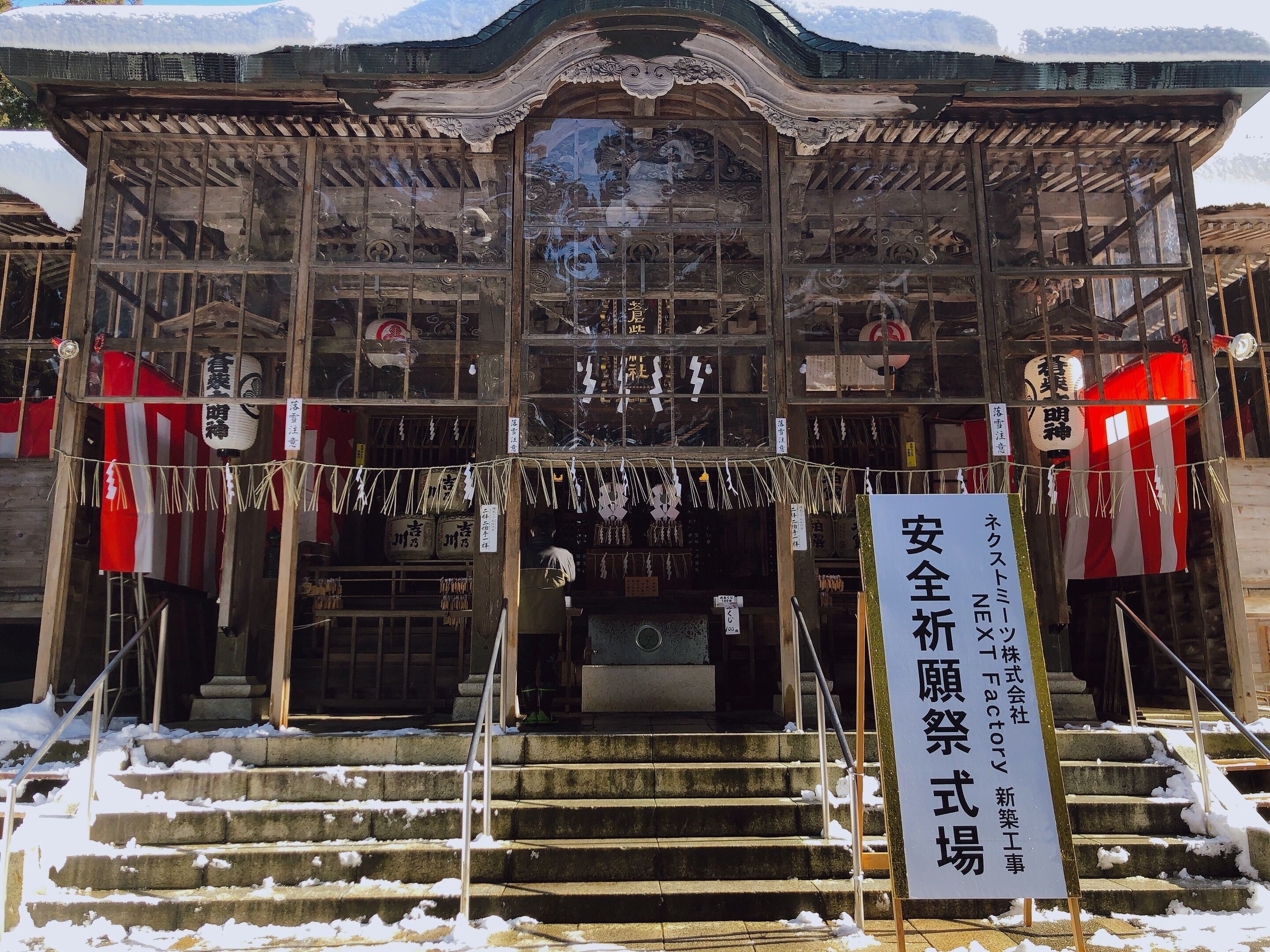 工場建設の安全祈願を祈り、2021年12月29日(水)に新潟県長岡市の蒼柴(あおし)神社で実施