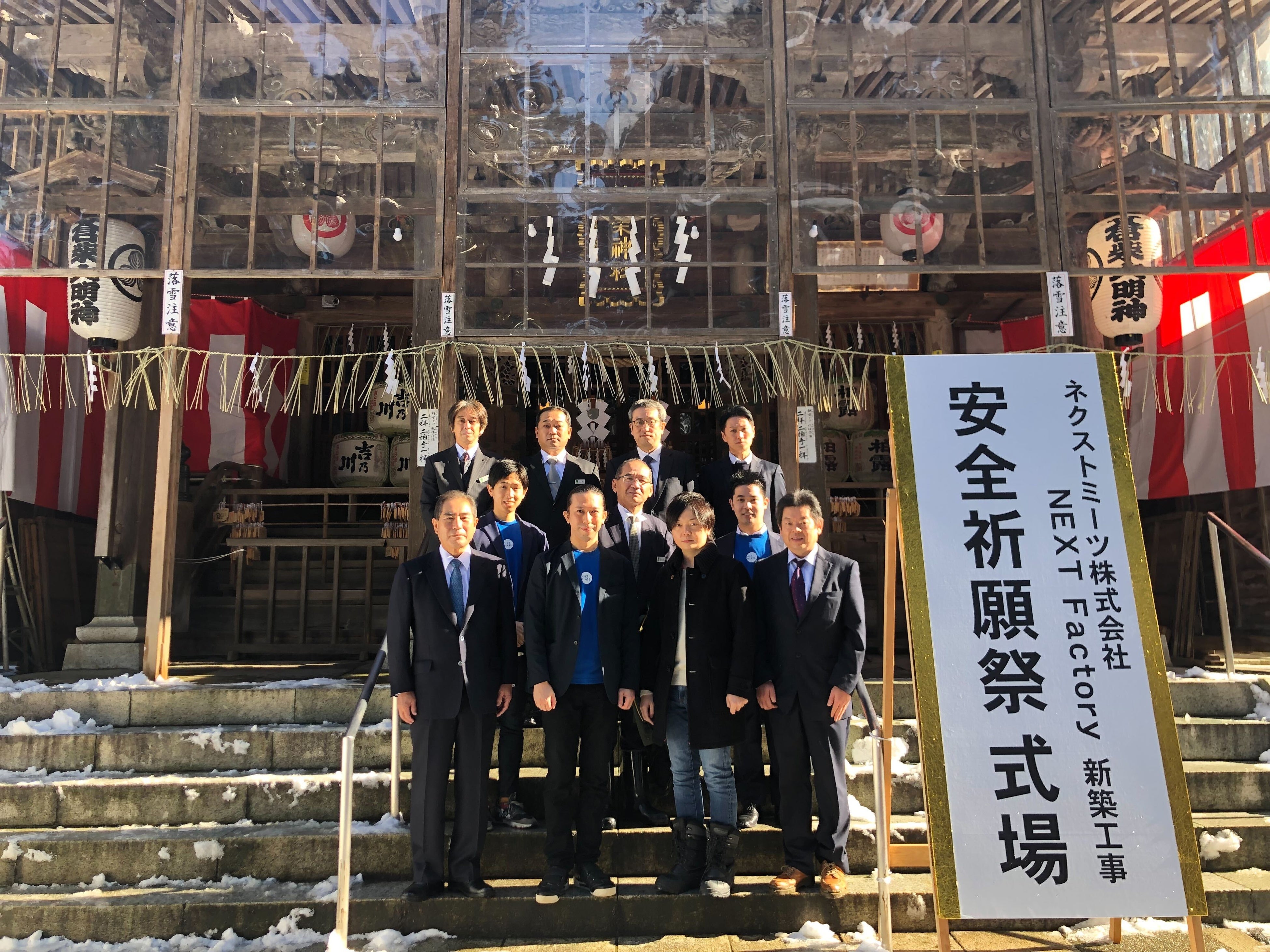 ネクストミーツ株式会社(本社:東京都新宿区、代表取締役:佐々木英之、以下「ネクストミーツ」)は、2021年12月29日(水)に新潟県長岡市にて、当社の企業理念「地球を終わらせない。」をコンセプトとした代替肉製造専門の工場兼R&Dセンター「NEXT Factory(ネクストファクトリー)」新築工事の安全祈願を祈り、蒼柴(あおし)神社で安全祈願祭(地鎮祭)を実施いたしました。