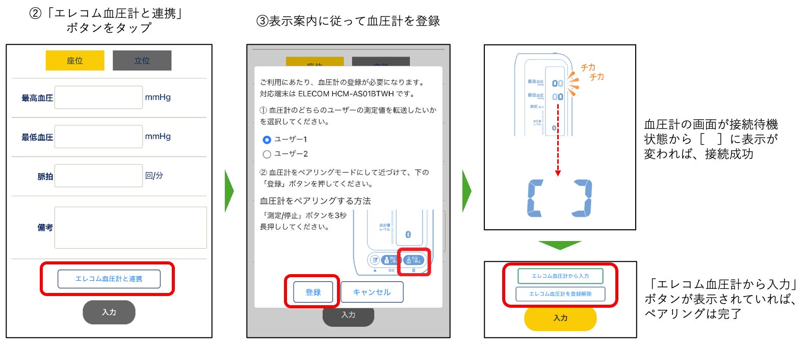株式会社ヘルステック研究所(本社:京都府京都市、代表取締役:阿部 達也、以下「ヘルステック研究所」、または「当社」)は、当社が提供する生涯PHRアプリ「健康日記」とエレコム株式会社(本社:大阪市中央区、取締役社長執行役員:石見 浩一、以下「エレコム」)が提供するエクリア上腕式血圧計シリーズとのBluetooth連携を開始したことをお知らせいたします。