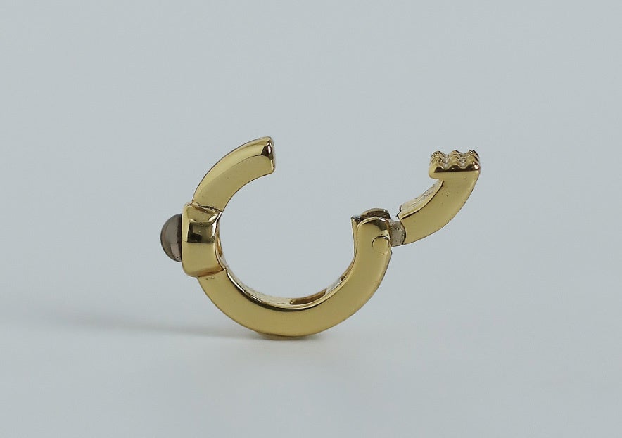 フープタイプは、ミニマルな形状に合わせたバネ式開閉パーツ(スプリング構造)を採用し、スムーズな着脱と安定した装着感を両立。