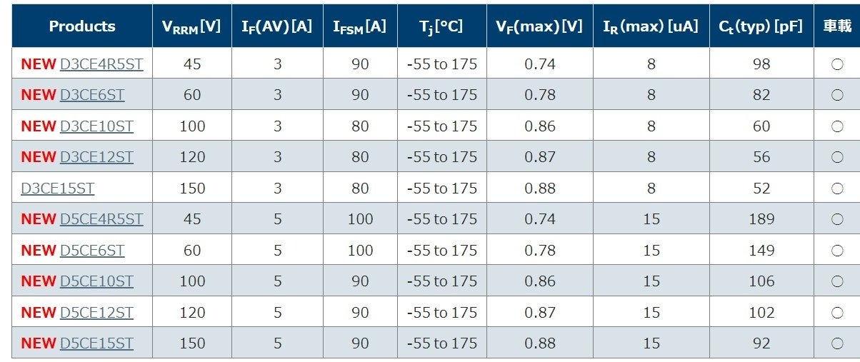 新電元工業は車載機器向けにショットキーバリアダイオード「SLSBD®シリーズ」を発売しました。
