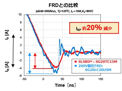 ※2 SLSBDシリーズ:SG20TC15M と 200V耐圧ファストリカバリーダイオード:SG20LC20USMとの比較