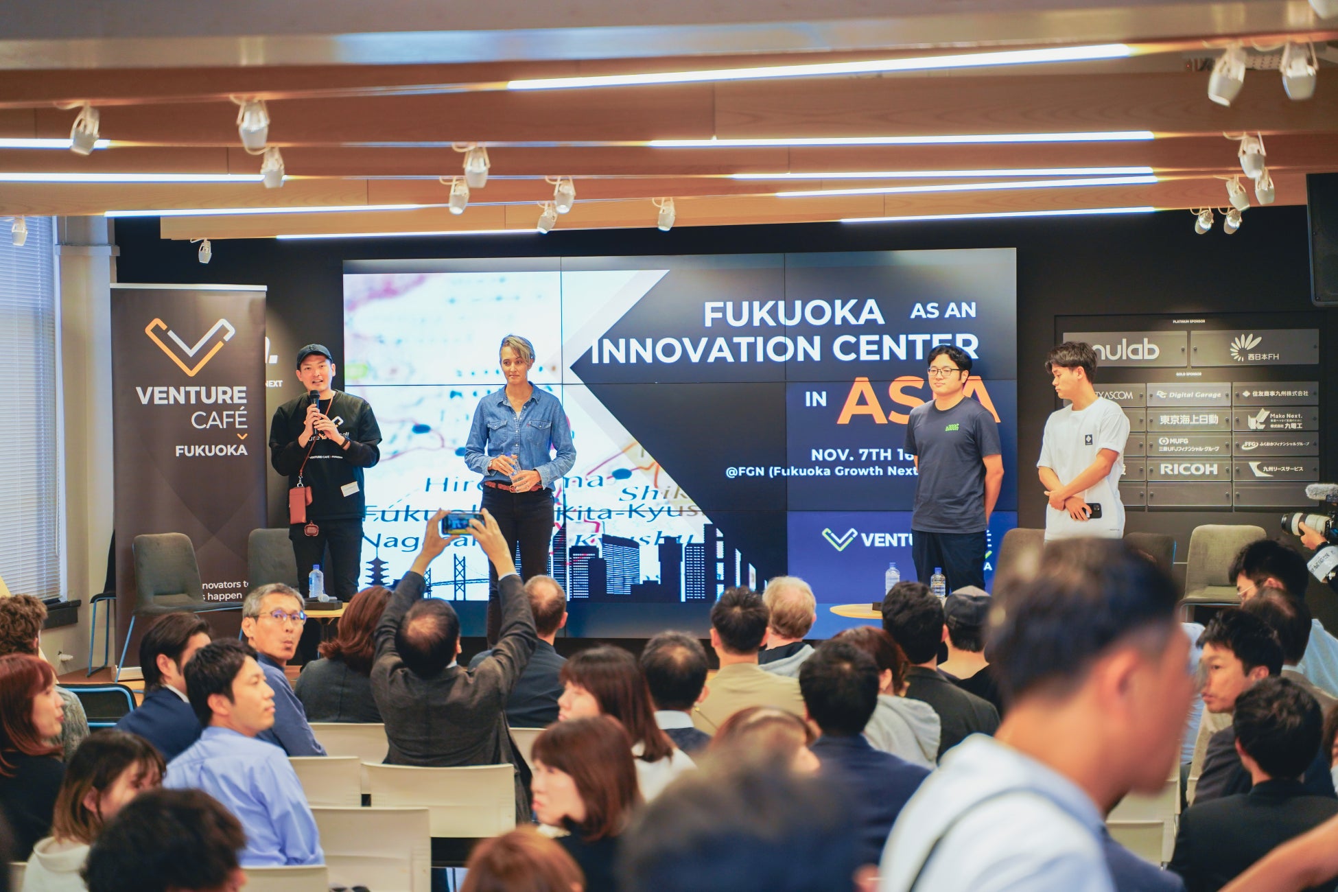 2024 年 11 月に国内 2 拠点目として福岡にオープンした Venture Café Fukuoka は、九州・福岡エリアにおけるオープンイノベーションのハブとして、毎週多彩なセッションやネットワーキングの機会を提供。累計 1,000 人を超える方々にご来場いただき、地域に根ざしたイノベーション・コミュニティとして確かな手応えを感じています。