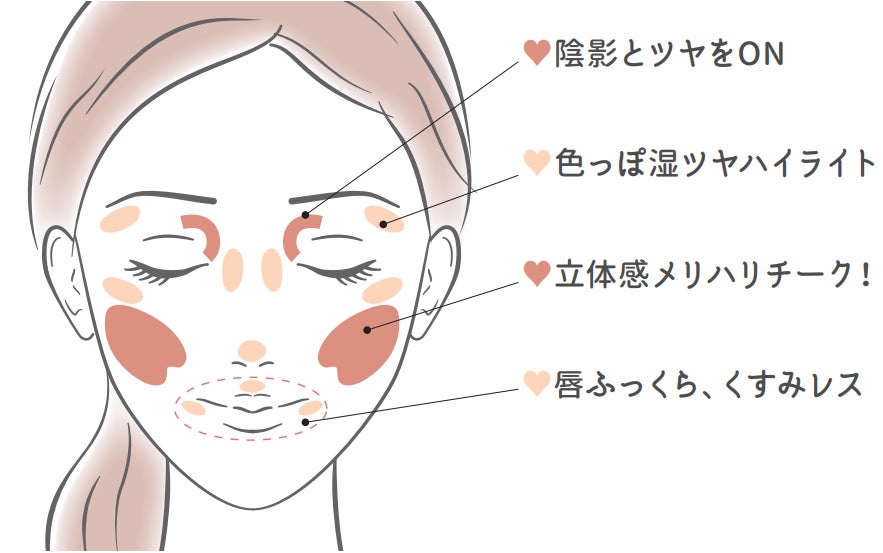 また、コロナ禍でオンライン会議が日常化し、リモート映えを意識する方が増加。それに伴い、立体感を演出するハイライトやシェーディングの需要が高まっています (当社調べ)。今回発売するフェイスニュアンスは、ハイライト、シェーディングだけではなく、アイカラーやチークにも使用できるマルチフェイスカラー。しっとり濡れたような「湿ツヤ感」を演出し、自然な陰影や、透明感のあるきれいな肌に仕上げます。