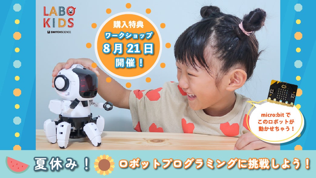 プログラミング学習を応援する子供向けウェブショップ「LABO KIDS(ラボキッズ、URL:https://labo-kids.com/」は、「micro:bit(マイクロビット)で動くプログラミング・フォロ」を購入された方を対象に、2022年8月21日(日)に開催するスイッチエデュケーションの「プログラミングワークショップ」に無料招待する夏休みキャンペーンを実施します。キャンペーン実施期間は2022年7月25日~2022年8月18日です。