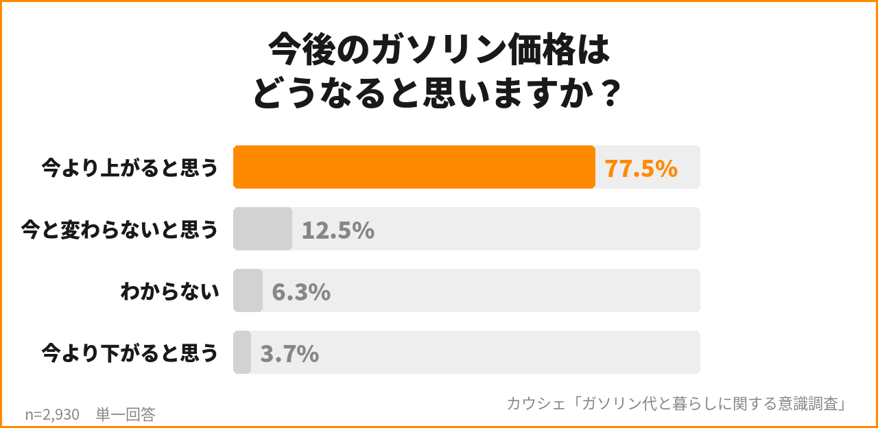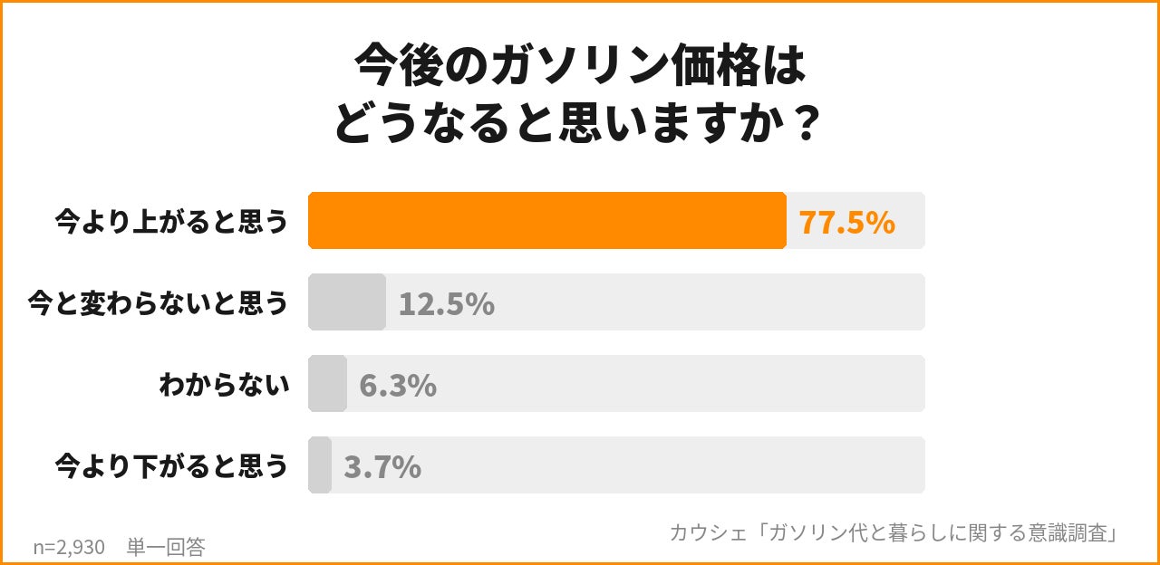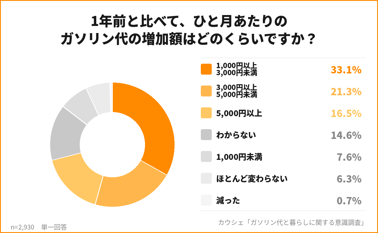株式会社カウシェ(本社:東京都渋谷区)は、2,930名を対象に「ガソリン代と暮らしに関する意識調査」を実施しました。
