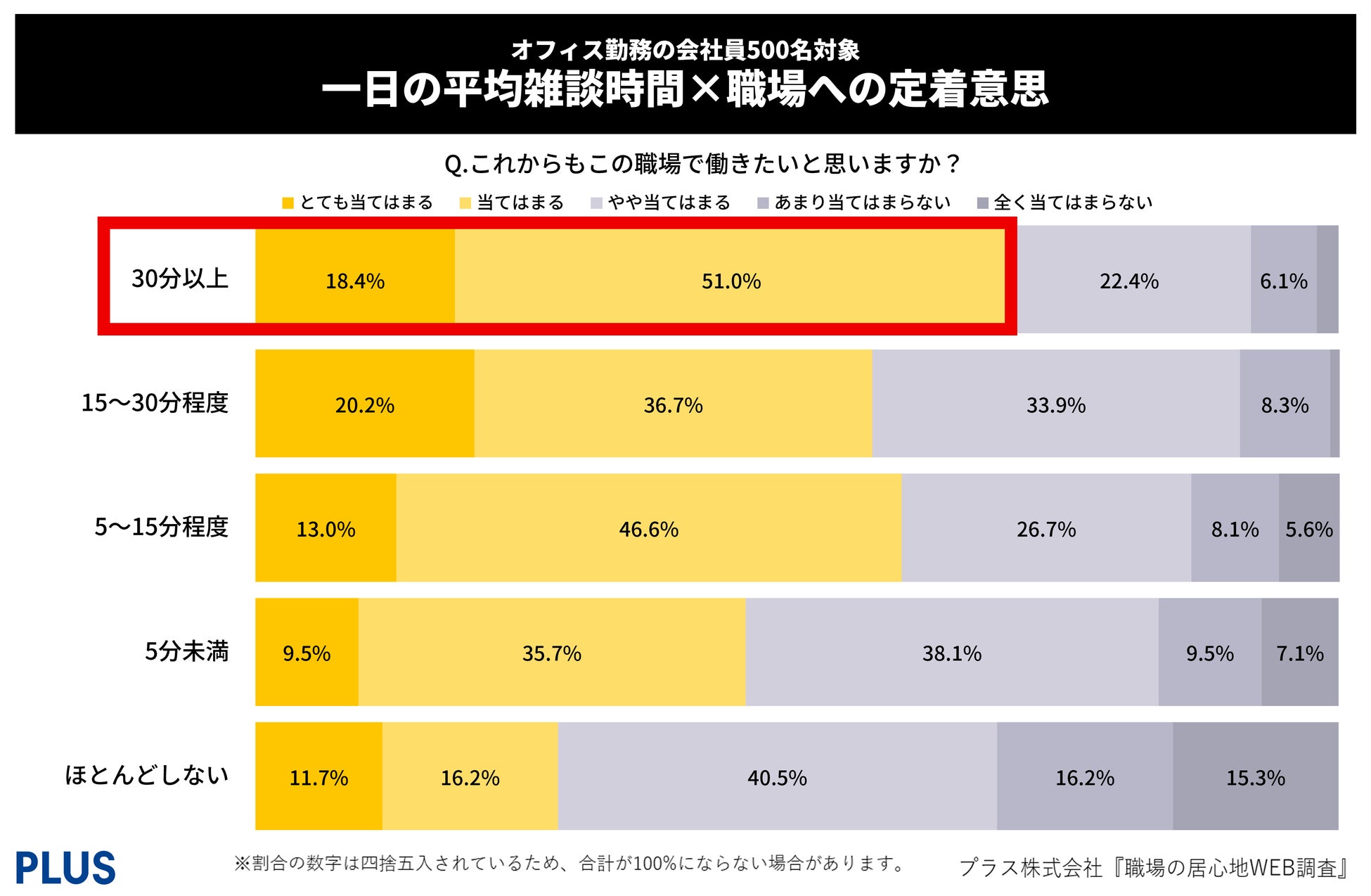 「プラス『職場の居心地WEB調査』より引用」などと明記いただければ貴社媒体や社内資料等に引用いただいて構いません。
