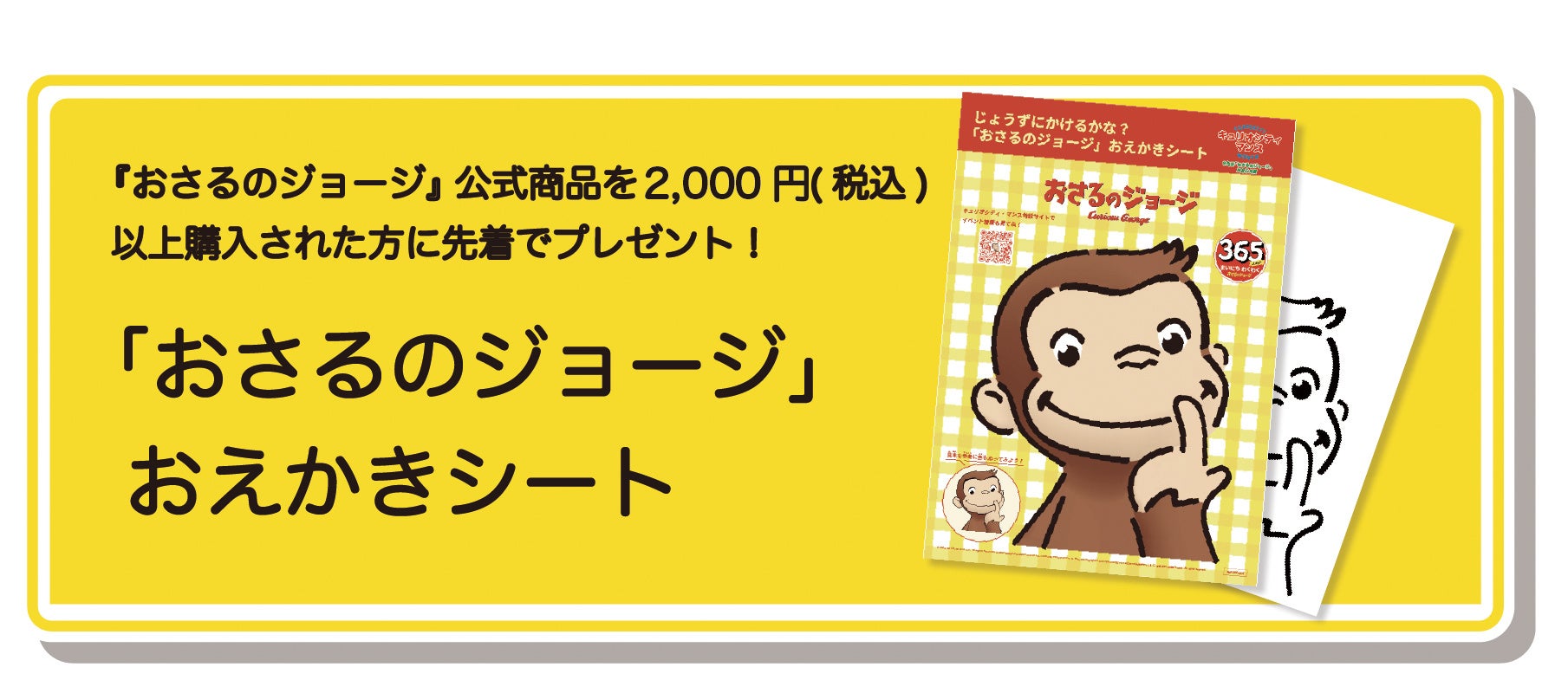 ▲ 「おさるのジョージ」スペシャルアイテムをお買い上げのお客さまに、先着でオリジナルの〈おえかきシート〉をプレゼント!