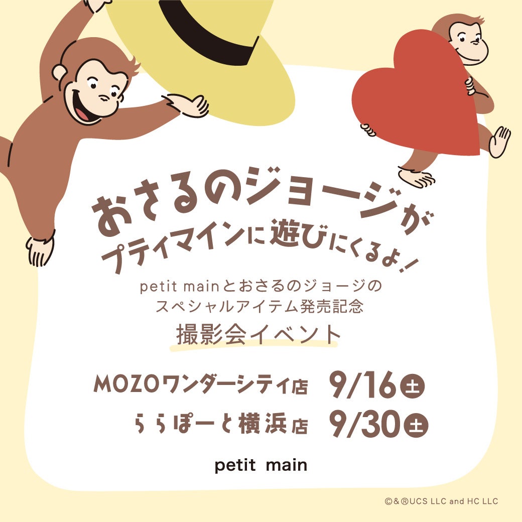 プティマインのお店に「おさるのジョージ」がやってくる!スペシャルアイテムの発売を記念してプティマイン限定店舗にて撮影会イベントを開催。2023年9月16日(土)・9月30日(土)の参加者を募集します。