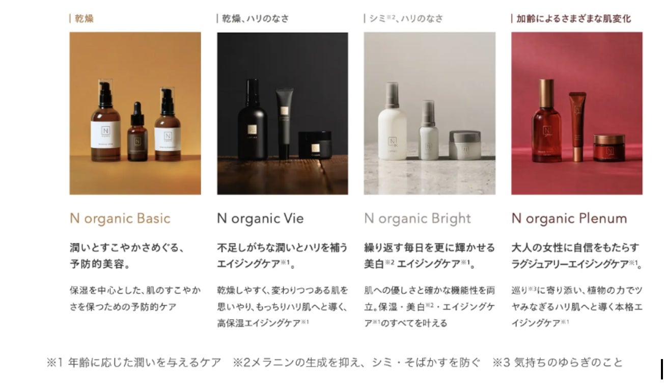 ビューティー&マインドケアブランド「N organic」を運営する会社です。「N organic」は“暮らしを豊かに”というブランドコンセプトを掲げ、2017年のブランド誕生以来、潤いとすこやかさめぐる予防的美容として基盤となるお手入れの「N organic Basic 」、続く毎日を大切に思える本格スキンケア「N organic Vie」、繰り返す毎日を更に輝かせる美白※2 エイジング※3 ケア「N organic Bright」、これからの暮らしをより豊かにする本格エイジング※3 ケア「N organic Plenum」と4つのスキンケアシリーズを発売。その他、素肌を思いやりながらメイクアップする「&WOLF」、暮らしの中に素敵なアクセントになる時間をつくる「N organic HOME」とスキンケアシリーズ以外も展開し、より一層お客様の暮らしに寄り添えるようなブランドを目指しております。詳しくはこちらをご覧ください。