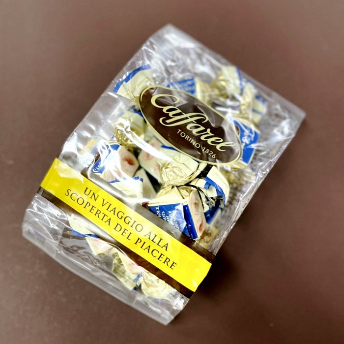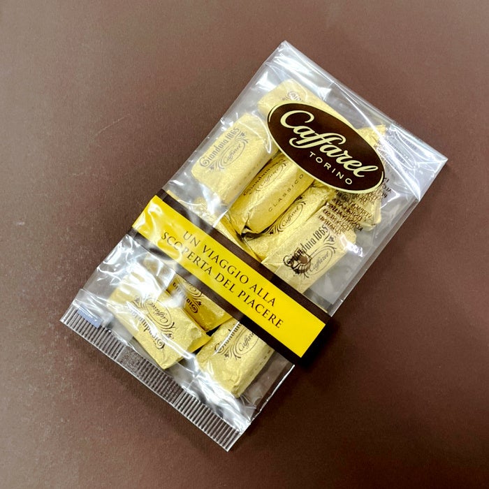 詳細:カファレルの代名詞である「ジャンドゥーヤ」のビターフレーバー。ジャンドゥーヤと同じく、イタリア・ピエモンテ州の最高級のヘーゼルナッツペーストが練り込まれており、1粒でまるで上質なチョコレートケーキを食したかのような満足感が得られます。