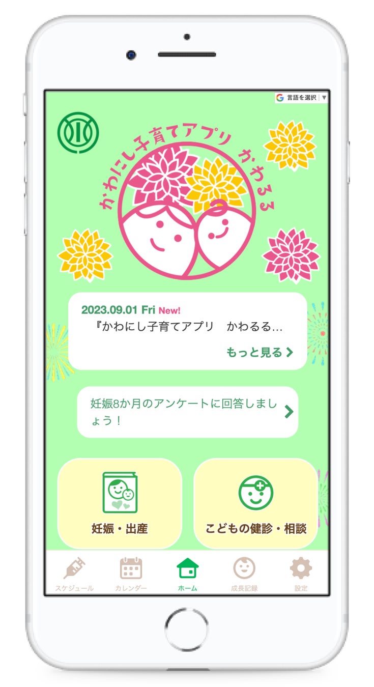 この度、妊娠期からニーズに応じたきめ細かい・切れ目ない子育て支援の一環として、健診・予防接種のお知らせをタイムリーに提供する「かわにし子育てアプリかわるる」を導入いたしました。