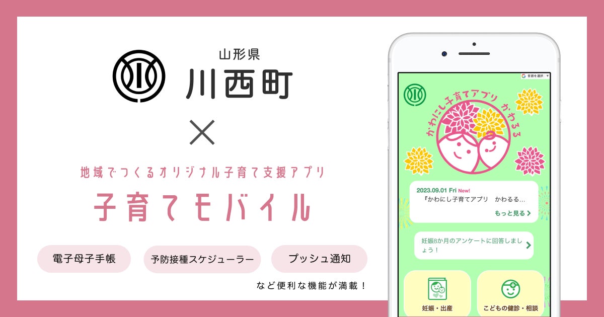 ミラボ、山形県 川西町で子育て支援アプリ「かわにし子育てアプリ かわるる」およびアプリ内で簡単に回答できる「アンケートサービス」提供開始