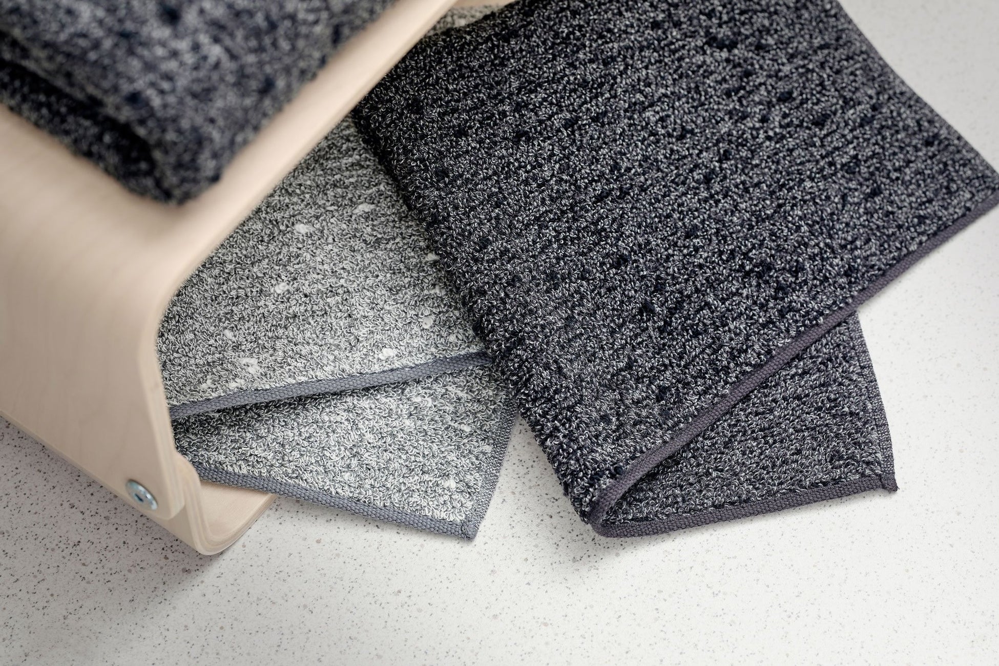 最高品質として有名な紀州備長炭の粉末を練りこんだ糸で織り上げたタオル。備長炭の特性である湿気やにおいの吸着、また消臭効果を発揮するなど機能性が備わっています。また、炭本来が生み出す日本らしさを象徴するシックな色合いも人気を後押ししています。
