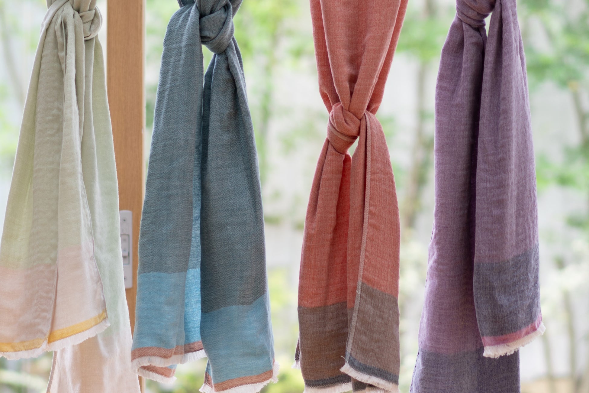 綿100%の高機能素材であるマシュマロガーゼのマフラー。マシュマロガーゼは、表面と裏面には撚りの少ない糸、中間生地には強度の高い糸で織り上げた3重構造のガーゼです。通気性、吸湿・吸水性、また程よい保温性があるため、汎用性が高く、タオルやウェアなど多くの製品に使用されています。国内外10か国で特許を取得している革新的な素材です。