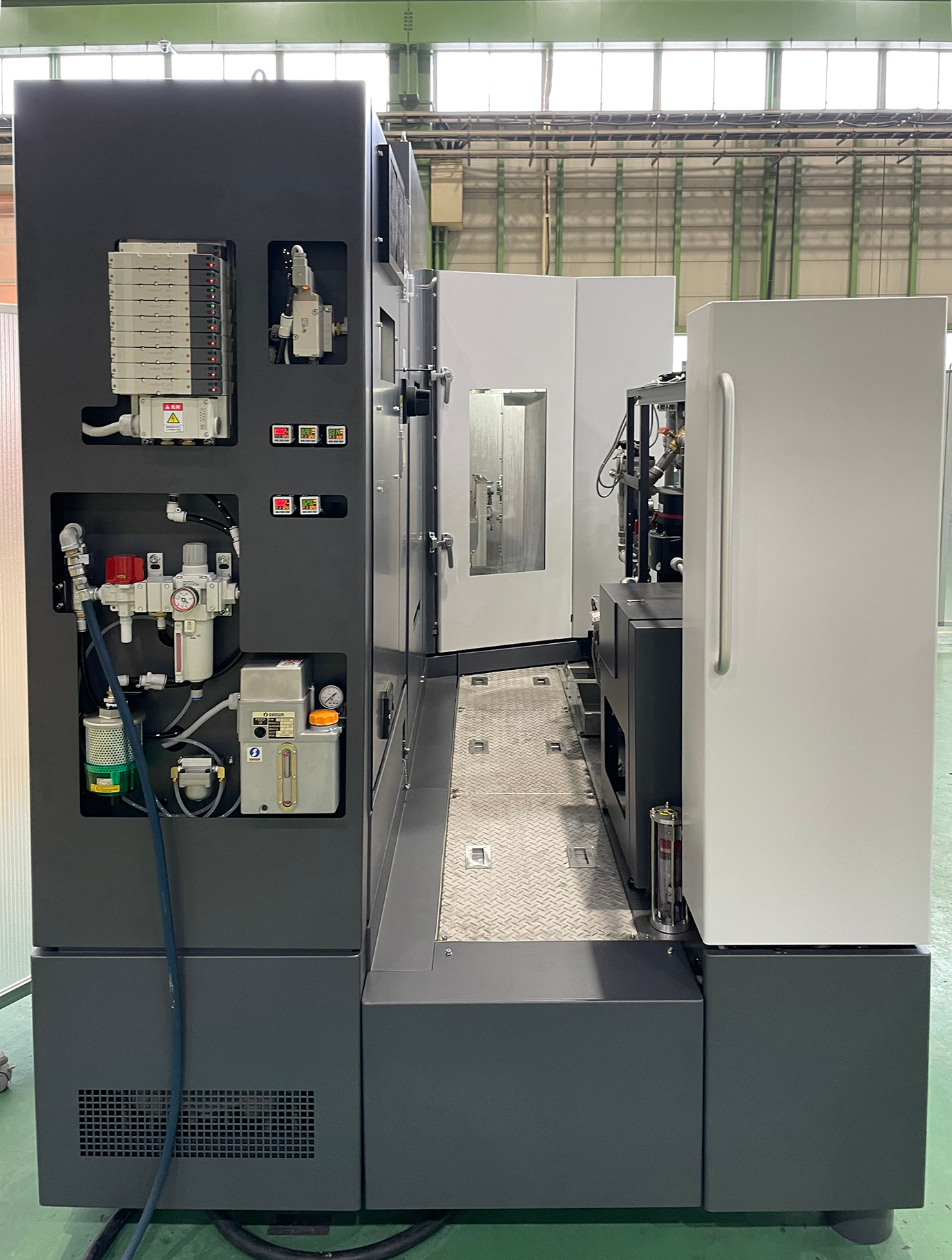 加えて、装置の両側面には機器や扉を配置していないため、装置の隣接設置が可能となり、工場レイアウトの省スペース化にも寄与します。