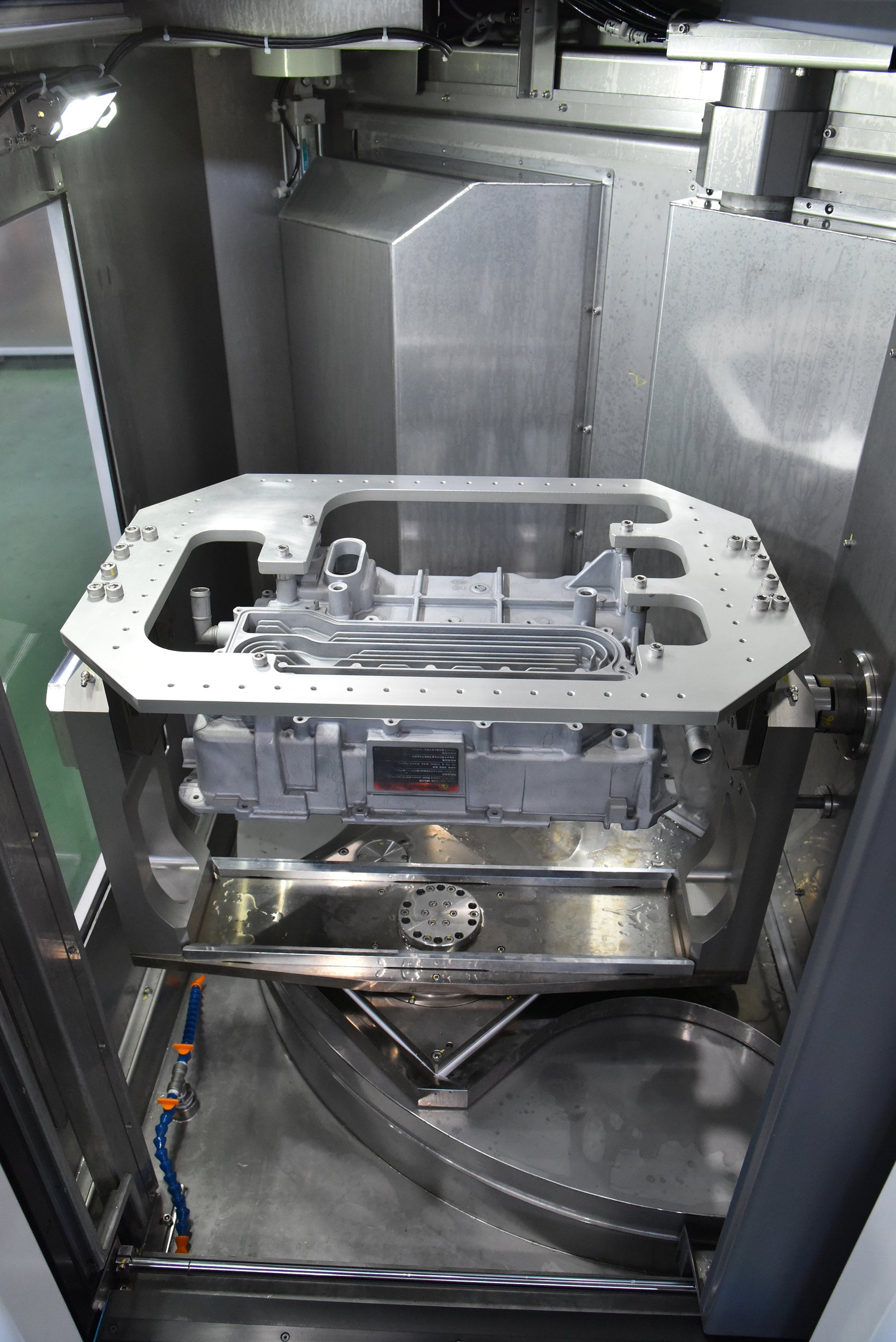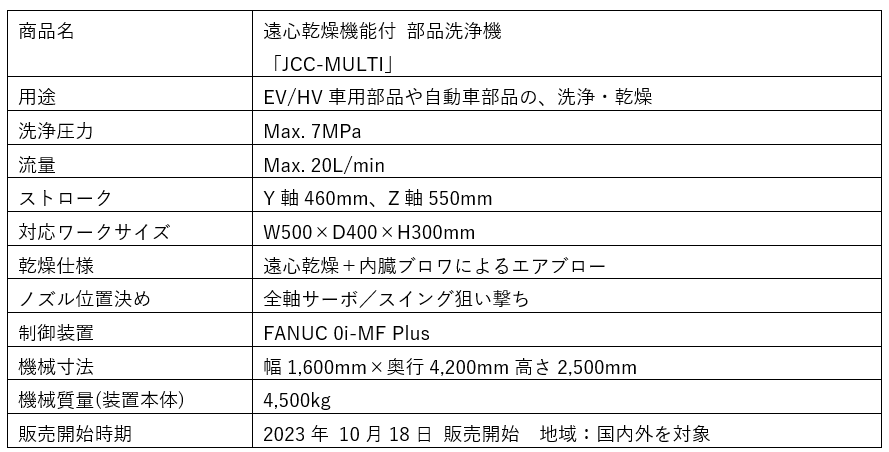 水を高圧で噴射してあらゆる部品の洗浄を行う、高圧水部品洗浄機のベストセラー「JCC」シリーズの新商品です。ターンテーブルを搭載し、EV部品の洗浄・乾燥をこれ1台で行うことができます。