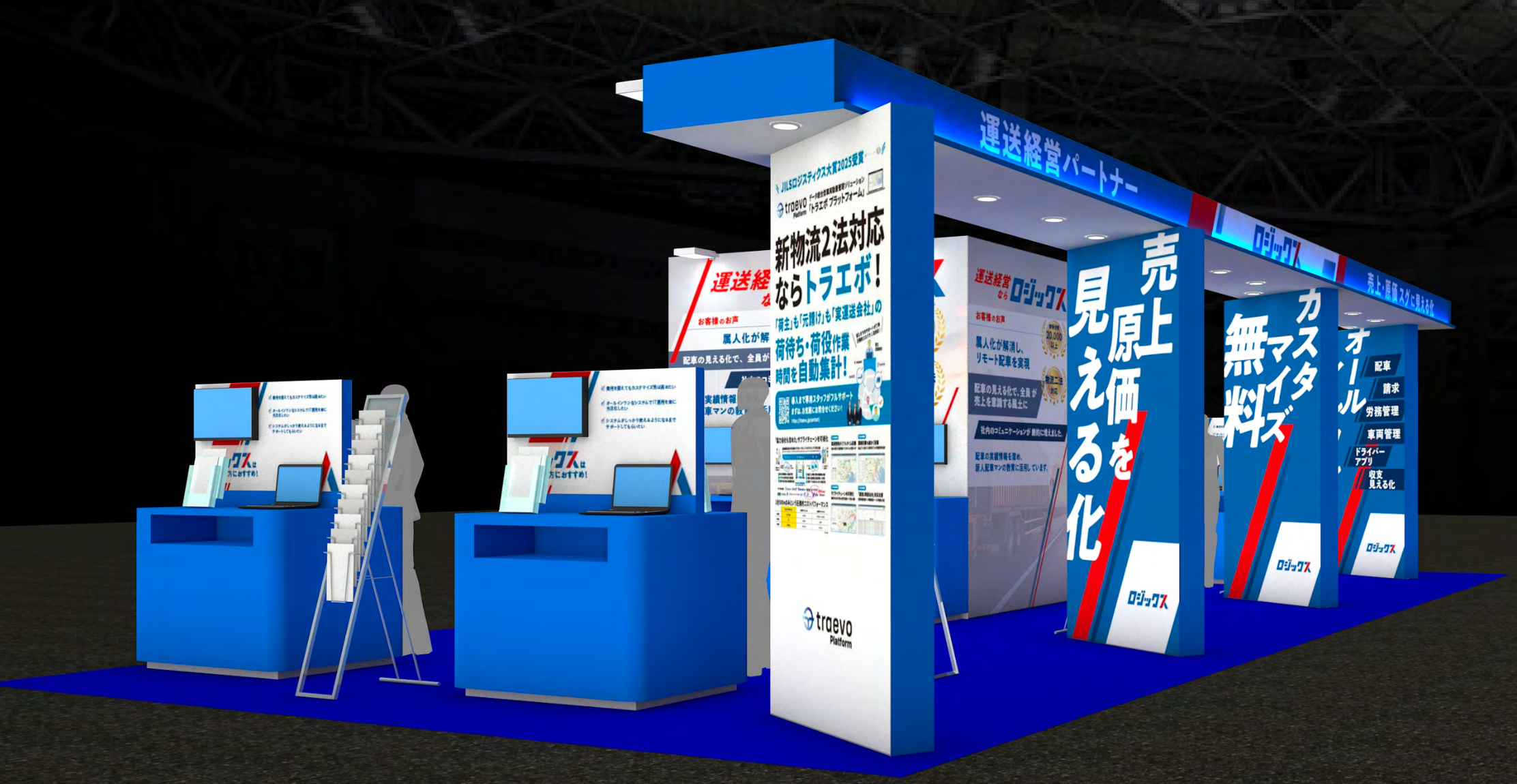 本展示会では、一般社団法人運輸デジタルビジネス協議会(本社:東京都港区、代表理事:小島 薫、以下「TDBC」)との共催出展を行います。当社製品の『ロジックス』に加え、動態管理プラットフォーム『traevo Platform』および共同輸配送デジタルマッチングサービス『traevo noWa』を体験いただけるブースを展開します。
