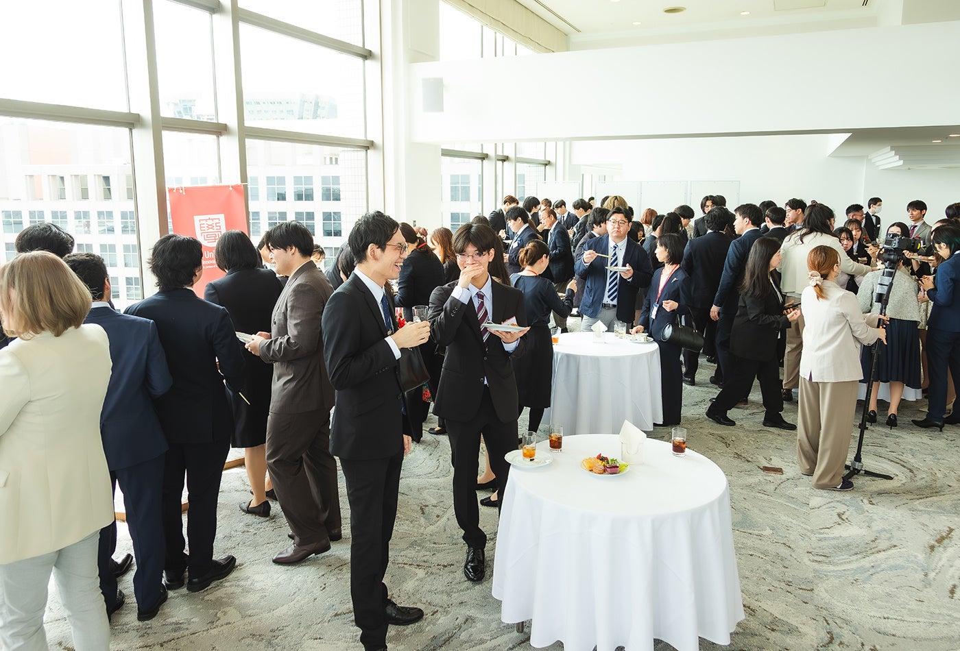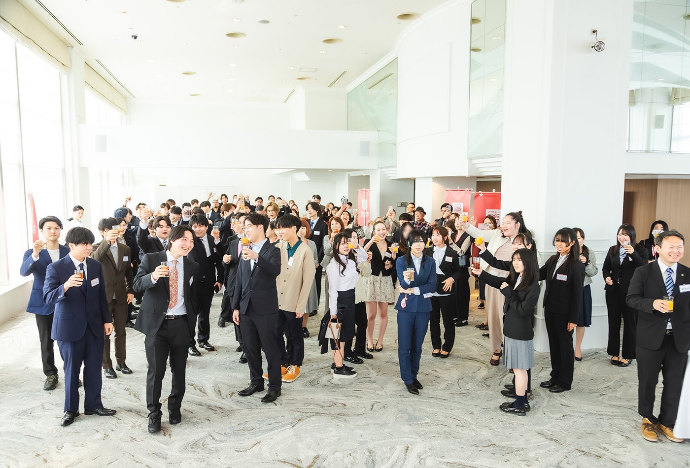 会場は天王洲キャンパスに隣接するANA Holiday Inn 東京ベイ最上階のラウンジ「オーシャンブルーム」。天候にも恵まれ、清々しい雰囲気の中で式典を執り行うことができました。