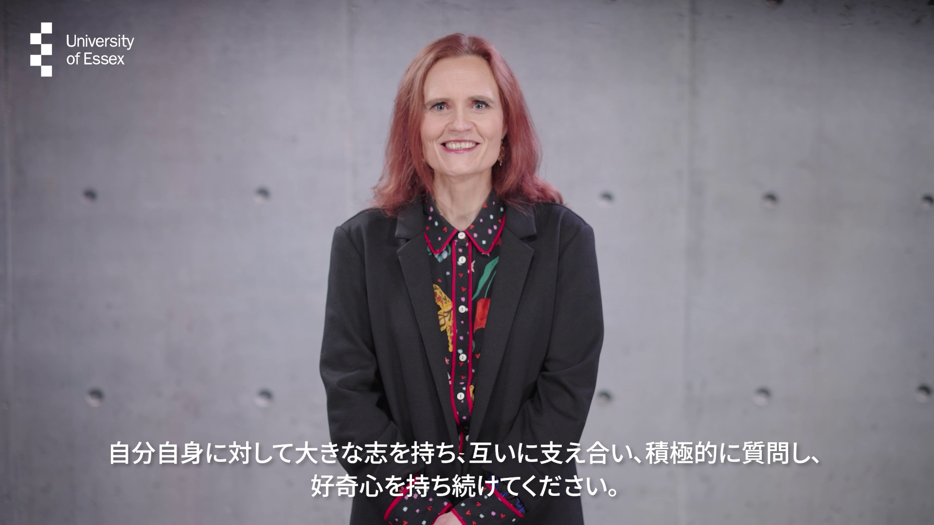 皆さんは多様な国や文化に広がるエセックス大学のコミュニティの一員でもあります。これからの機会を活かし、高い志を持って主体的に学び、互いに支え合いながら成長していくことを期待しています。