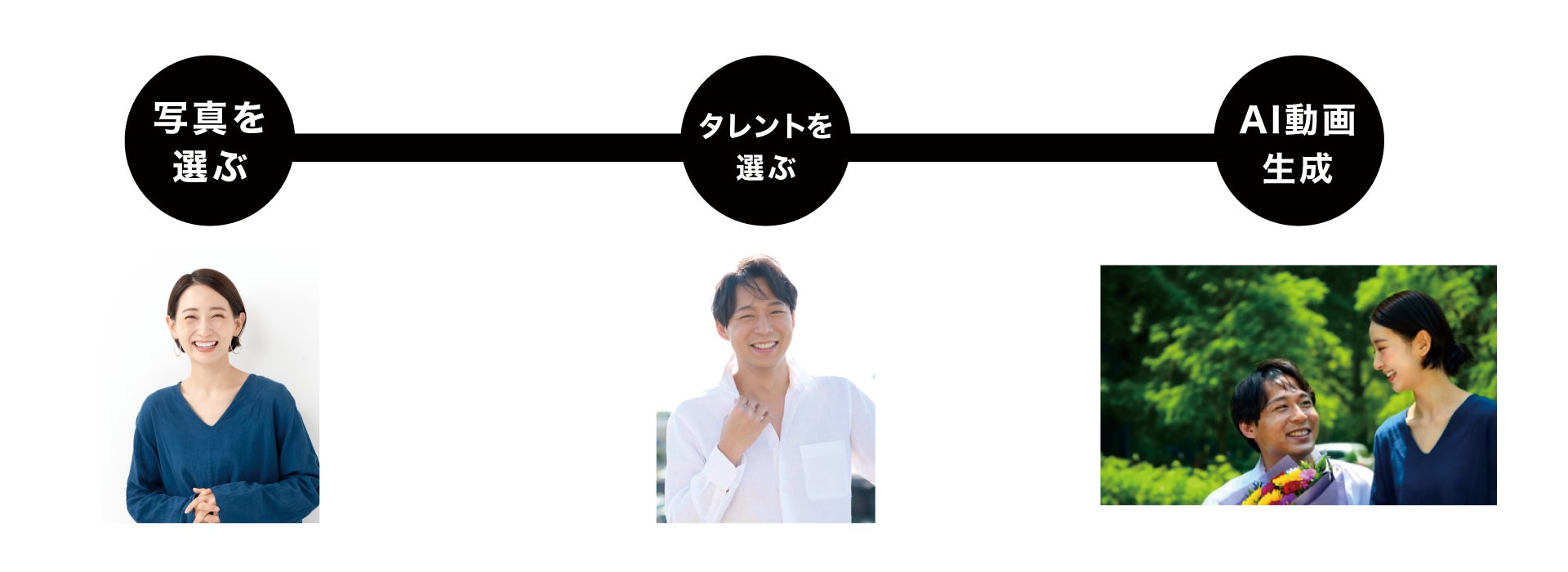 最新のAI技術を活用し、ユーザーがアップロードした写真と、著作権許諾を得たIPを組み合わせたショート動画を生成します。