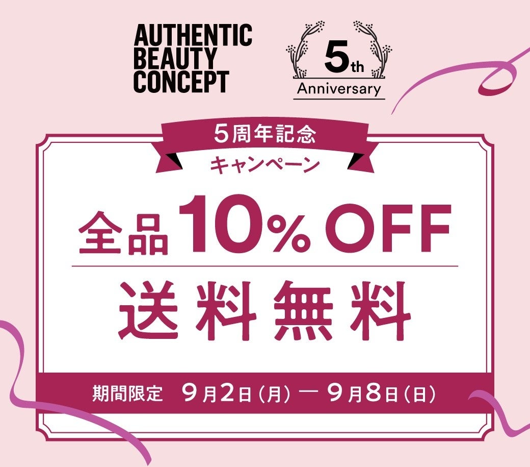 期間中オーセンティック ビューティ コンセプト公式オンラインショップで製品をご購入いただくと全品10%OFFに加え送料も無料になる嬉しいキャンペーンです。